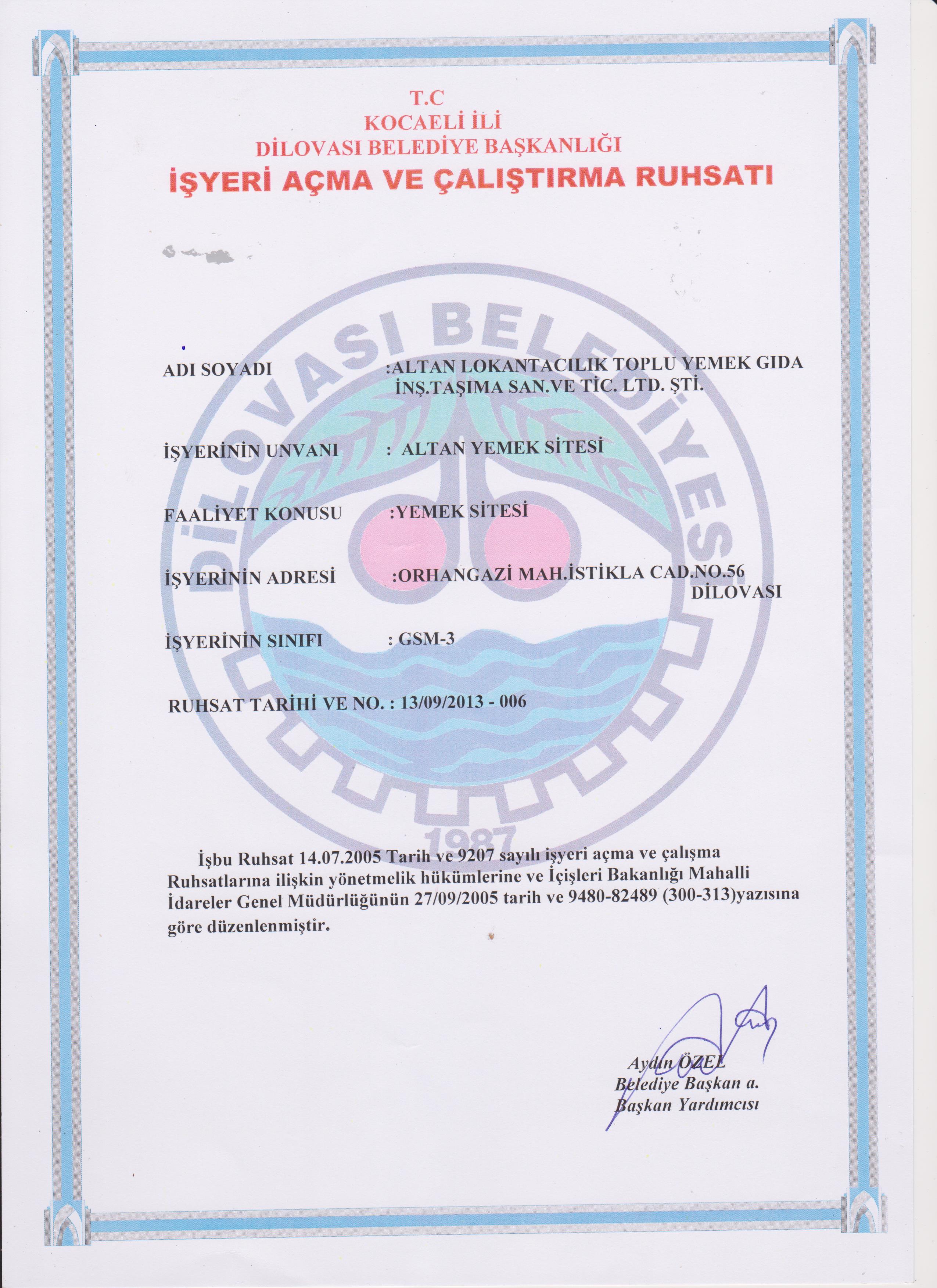 2013 ALTAN YEMEK LDT.ŞTİ.